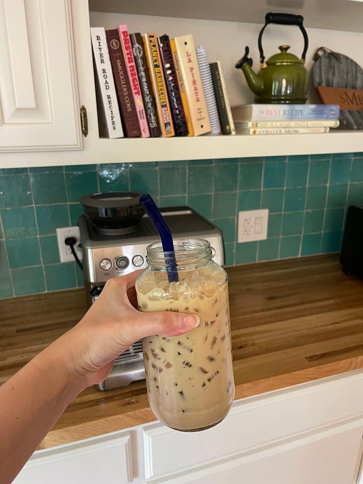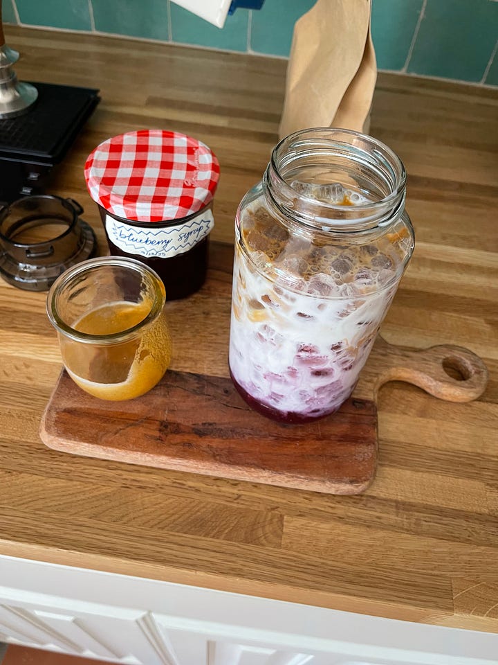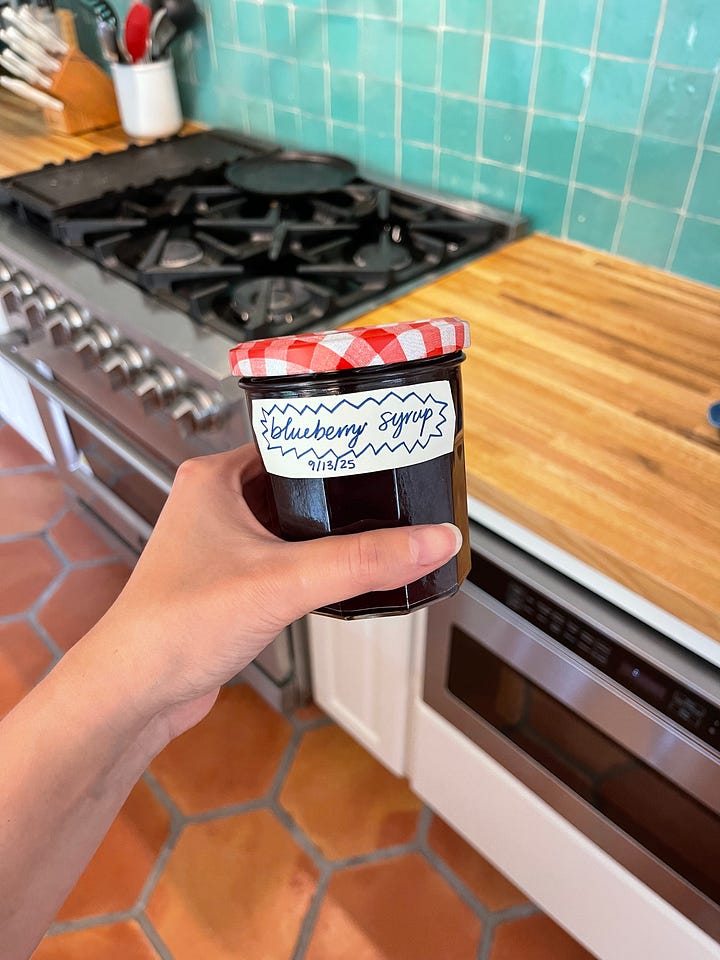 Sunny likes to sit and watch me make my coffee, btw. My real child The blueberry syrup I made this month deserves its own spot (I include the recipe at the end, btw):