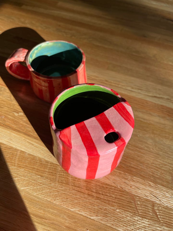 Sunny using her charm to get a cookie (didn't work) My birthday is next month and I thought why not get this party started this month?? Needed it, honestly. I ordered these two mugs off of Etsy and I am IN LOVE. :)
