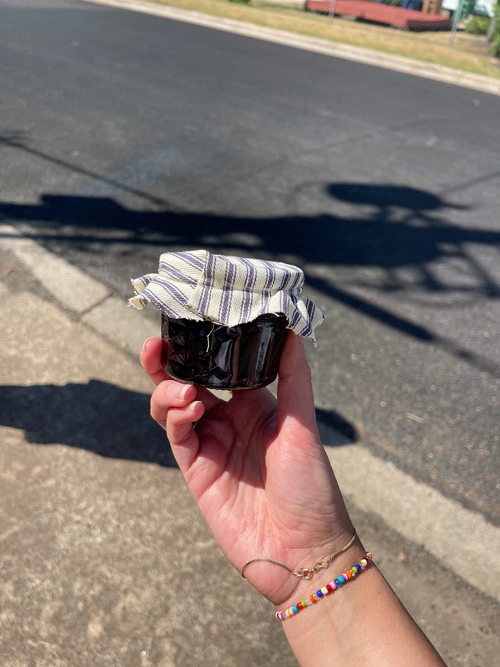 I went to my friend Hannah’s Tiny Farmer’s Market. I met Hannah through Tik Tok (don’t tell my parents I’m meeting strangers on the internet!!) and she hosts a Tiny Farmer’s Market in her front yard. They had homemade jams, textile art, wine, coffee, jewelry, embroidery, live music, and a lot more. I got some Blueberry Lavender Jam from Hannah! If you’re in Austin, you should check it out :)