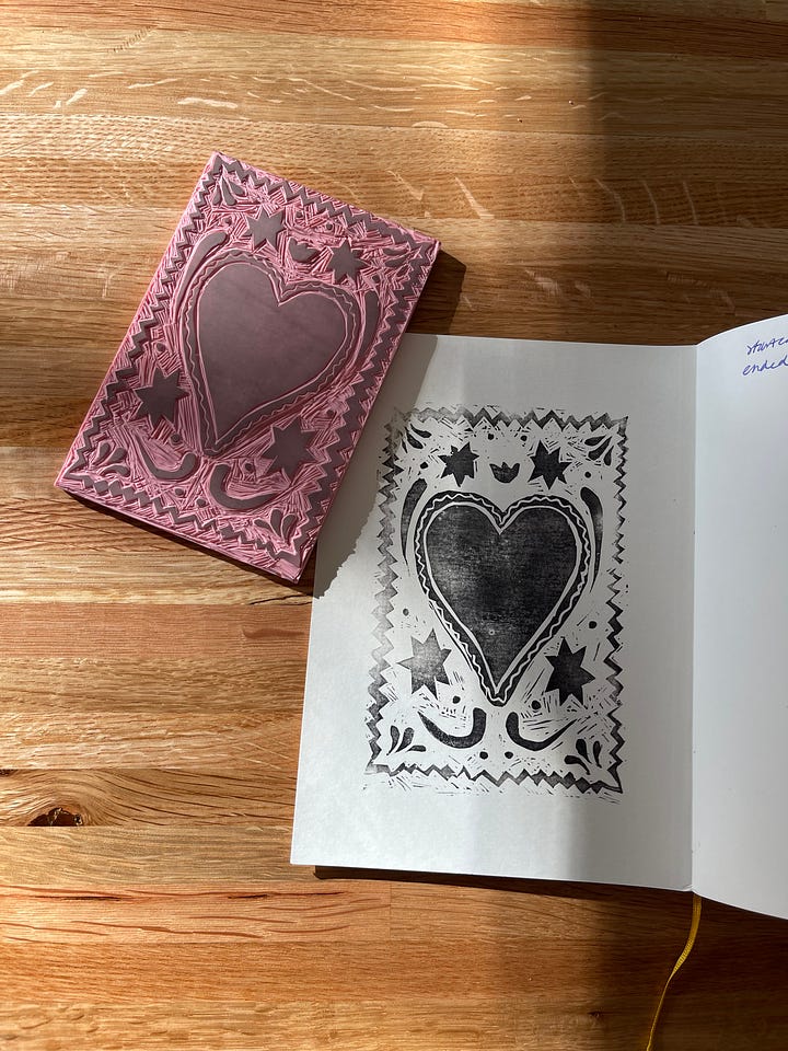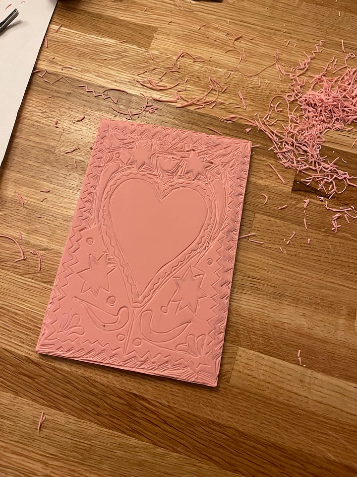 I’m all about trying new things and I’ve been seeing linocut art allllll over the place and thought I’d give it a go! It’s definitely not perfect, but I am really pleased with how it turned out. I’m thinking of using this stamp (or another??) for my next snail mail club :)